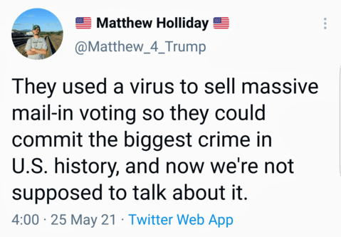 People died from something. I’m not denying that. How much was due to it and how much was due to their co-morbidity I don’t know. They’ve already said they learned from their ability to control the population during this, that it can be used to alleviate concerns about “global warming”by limiting and controlling the actions of people in the future. It is also finally gaining traction that the Wuhan Lab was working on a “gain of function” (getting the virus to pass to humans), why would they be doing that? Why did Fauci fund it? But their coupe de gracie was using the virus to promote the mail in ballot scam and steal the election from Trump for their commander in thief Biden.