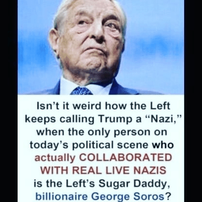 Isn’t it weird how the Left keeps calling Trump a “Nazi”, when the only person on today’s political scene who actually collaborated with real live Nazis is the Left’s Sugar Daddy, billionaire George Soros? (Jew)