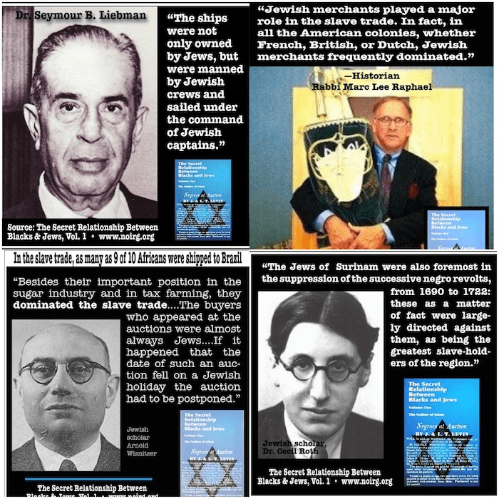 And while another Jewish history professor, Marc Dollinger, also downplays the Jewish “dominance” of the slave trade, he is at least is honest enough to acknowledge how Jews defended slavery, participated in it, benefited from it, and ultimately upheld “white supremacy” because it benefited Jews in their rise to social power. Dollinger’s following lecture discusses some of these uncomfortable issues — using historical documentation to prove Jewish complicity in the slave trade — worth watching: (a plethora of videos follow at Christians for Truth)