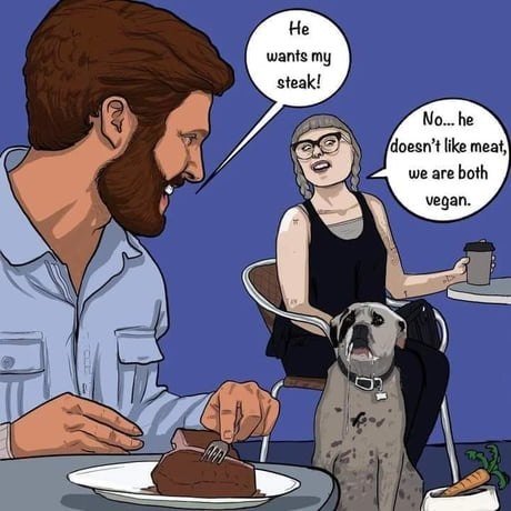 Its kind of like when a woman dresses in a revealing manner, “Oh no I don’t think of you in a sexual manner…” ignoring human instinct. Telling a dog he’s a vegan…