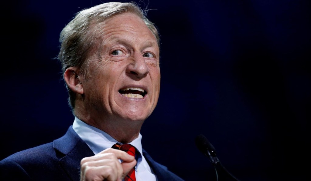 FILE PHOTO: Tom Steyer, founder of NextGen Climate, speaks during the California Democratic Convention in San Francisco, California, U.S. June 1, 2019. REUTERS/Stephen Lam/File Photo – RC1F3407F180