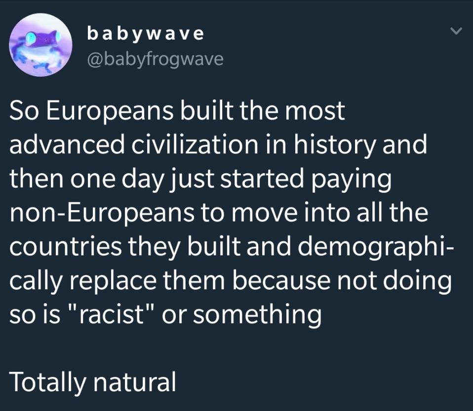 “The reason multiculturalism exists is to pretend that inferior cultures aren’t inferior and that superior cultures aren’t superior. It’s a way to tell nice lies about rotten cultures and rotten lies about great cultures.”