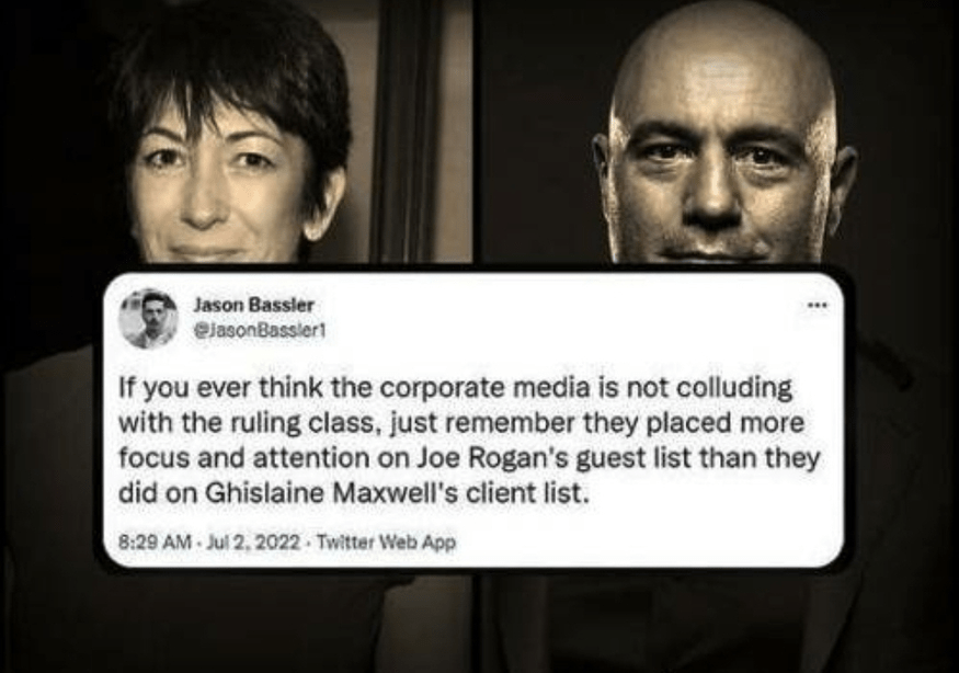 “If you ever think the corporate media is not colluding with the ruling class, just remember they placed more focus and attention on Joe Rogan’s guest list than they did on Ghislaine Maxwell’s client list.”